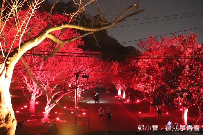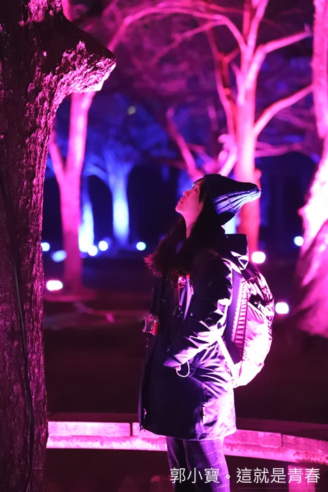 | 登高一望還真的有種置身在秋天紅葉樹林的感覺,粉紅燈光亮起的時候又變成了櫻花遍遍的錯覺,一整片的燈光交錯真的是美不勝收,好想就坐在這邊靜靜的欣賞這美麗的燈海。 |