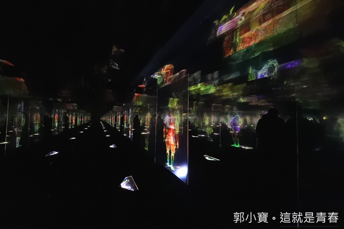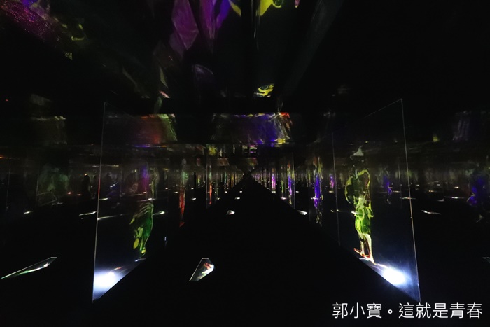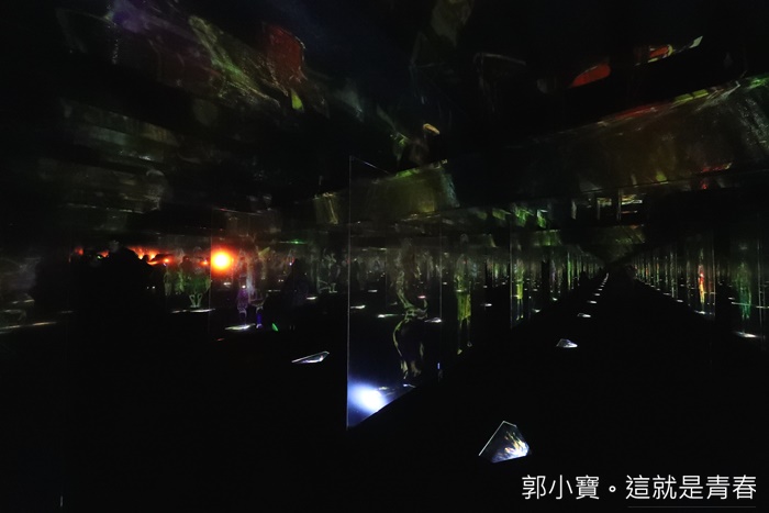 | 走的深入一點可以發現這邊還有湖泊,加上聲光的表現,水中的倒影相互輝印真的非常美麗,只要有人經過就會變化不一樣的主題聲光,LED數碼藝術祭各個展區的工作人員都非常多,所以一點都不用擔心安全問題,幾乎每個角落都有白色服裝的工作人員提供服務。 |