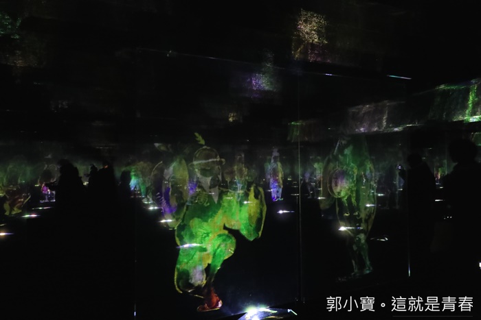 | 進入這裡似乎進入了另一個世界般,走進了日本的神話鬼怪世界的感覺,真的非常吸引人,每一遍玻璃裡面都有一個主角擺動,加上全玻璃屋的反射讓人感覺似乎有無窮無盡虛無飄渺的空間,搭配日本古老的音樂及口令,真的有種詭異及高深莫測的氛圍,讓人捨不得離開這個充滿奇幻的空間。 |