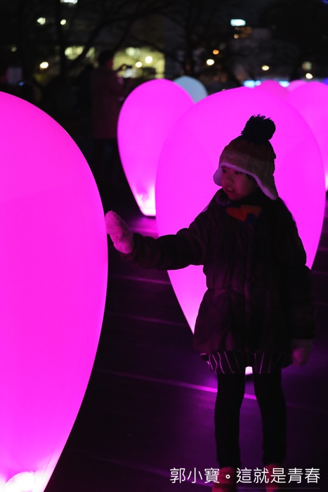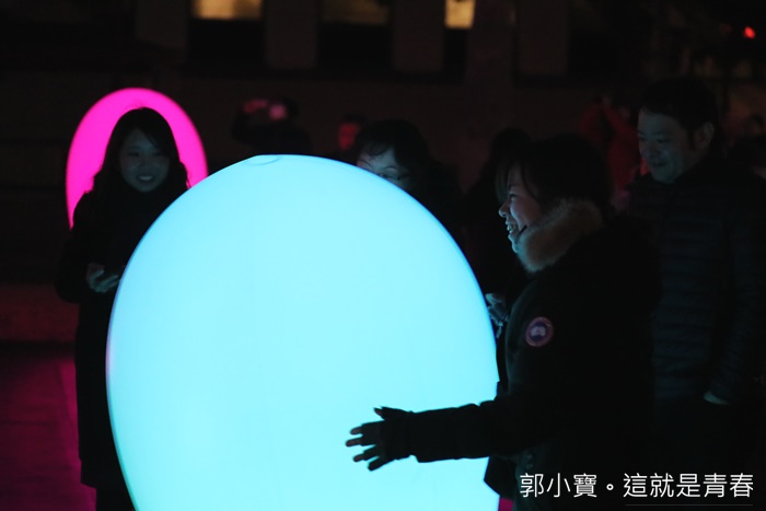 | 開幕就看到了那麼精彩的LED藝術表演真的還滿愉快的,每個人臉上都充滿了笑容,及實在寒冷的天氣裡依然不減民眾的熱情跟興致,小朋友更是玩到一整個開心無比,蛋型LED的數量非常多且大小不一,經過推擠及晃動遠處看起來很像五光十色的燭火搖曳著,真的一整個美不勝收。 |