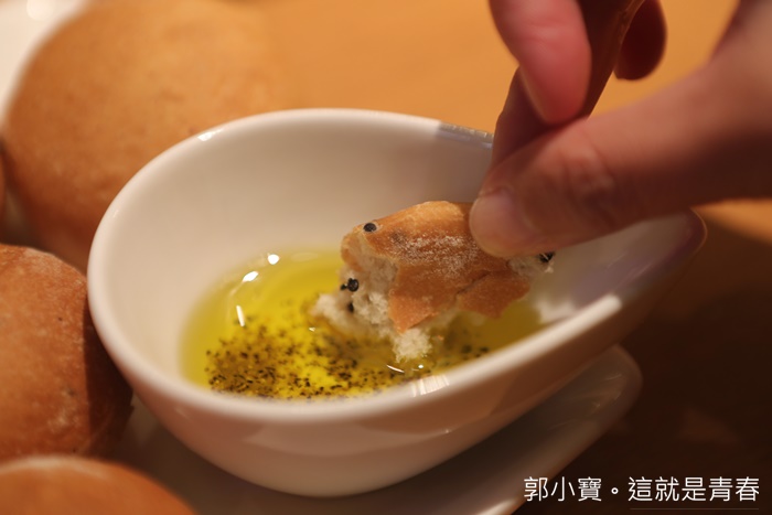 | 搭配橄欖油真的風味加倍,他們家的麵包真的很好吃,不知道可不可以追加,我可以吃他們家的麵包吃到飽沒問題的。 |