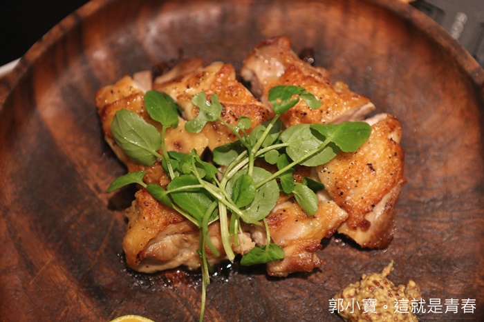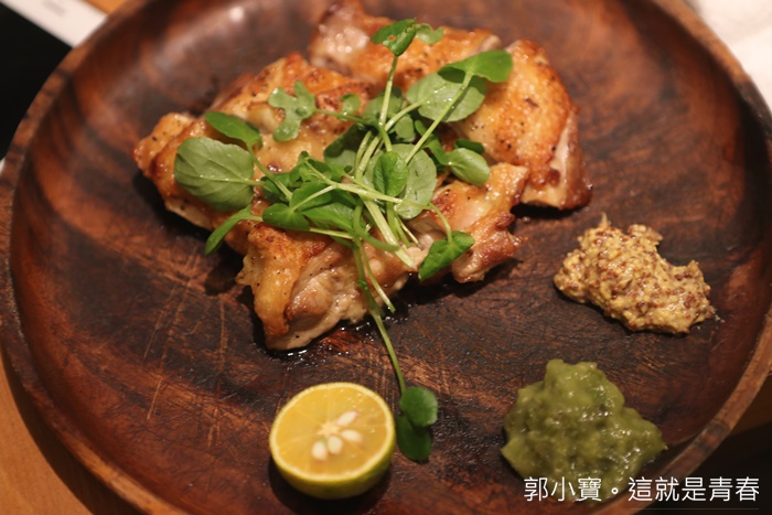 | 這邊的阿波尾雞雞腿是去骨的,看起來感覺就是用煎的樣子,香氣非常濃郁。 |