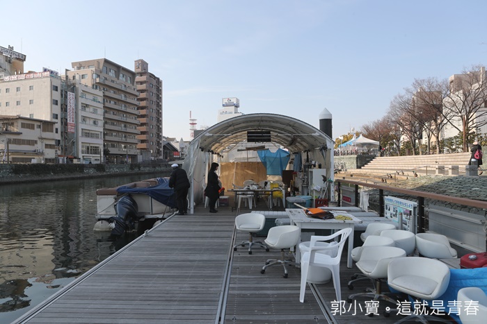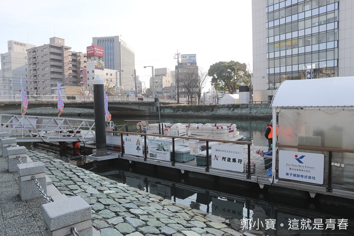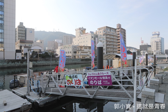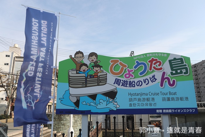 踏上德島的第一個行程就是到葫蘆島水際公園搭船欣賞兩岸風光,光是這個河畔公園就感覺超級美的,當天的大太陽加上寒冷的冬風讓人感覺非常舒服,一下德島機場就直奔這邊,這水上遊艇也算是德島市裡面的交通工具之一,最讓人津津樂道的是他完全不用收費,只是搭船的時候每個人要繳交200元的保險金就可以了,而且遊覽船也可以貫穿這城市很多地方。