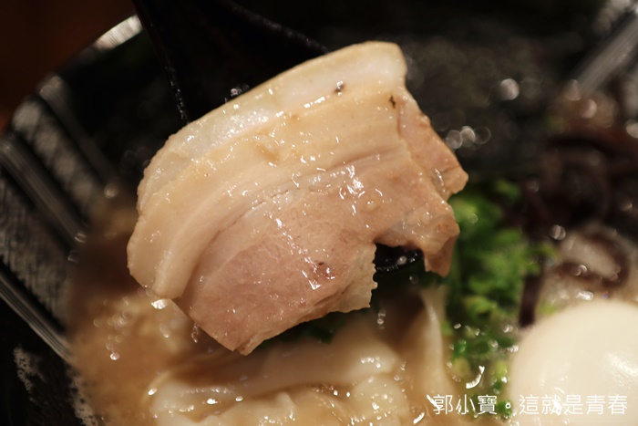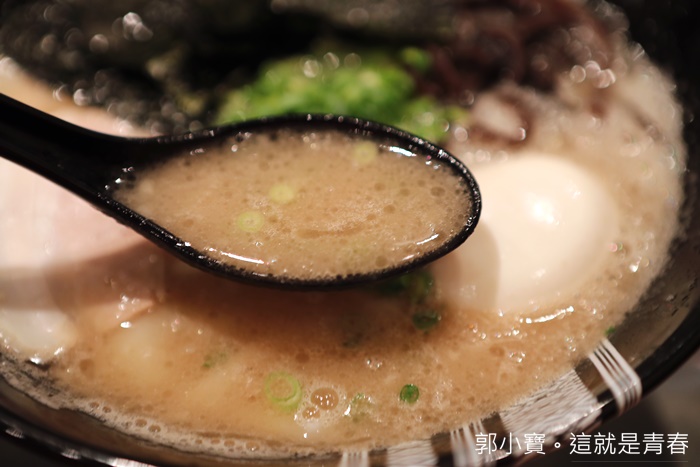 | 趁熱喝了一口湯頭,湯頭沒有味道那麼強烈,而且湯頭雖然濃郁但是沒有讓人覺得膩口,帶點稠度的湯頭喝起來爽度非常高,每一口都感受到滿滿的不膩豬油。 |