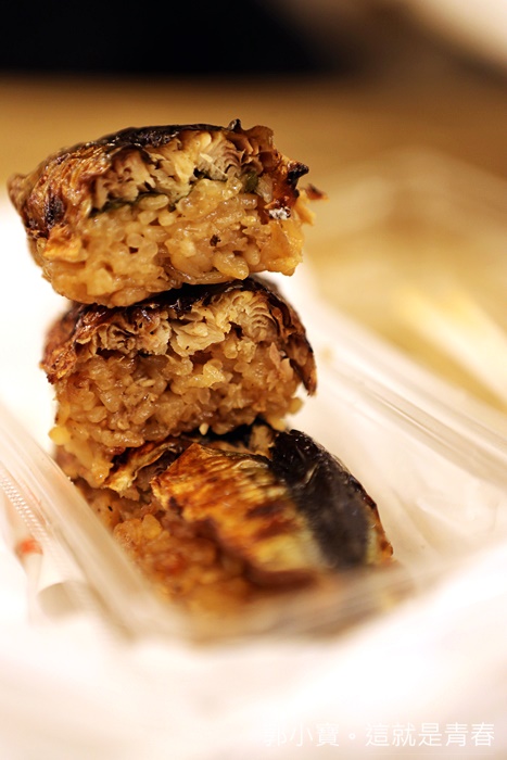 | 秋刀魚包飯交給客人之前會將草繩剪開,看看這秋刀魚燒烤的色澤,顏色超級漂亮的,連米飯都讓人垂涎三尺。 |