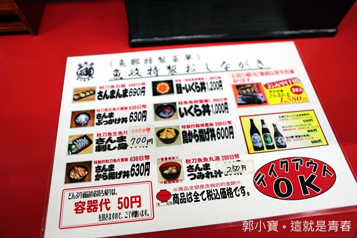 | 魚政販售的商品非常多,但是最出名的就是他們機的秋刀魚包飯,北海道的秋刀魚品質之高又肥又香是全球聞名的,來這邊不吃個美味的秋刀魚真的後悔,只是可惜無法親眼看到他料理秋刀魚包飯的過程有點遺憾。 |