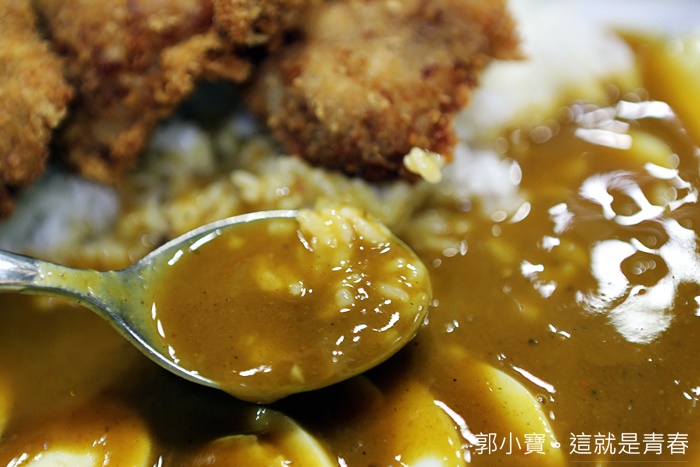 | 太妃點的也是豬肉咖哩,只是部位跟我點的是不一樣的,意外的也滿好吃的,雖然沒有油脂但是沾著咖哩後就沒有感覺那麼的乾柴,反而意外的好吃,結果每吃一口我就沾一次咖哩,而且它的咖哩非常多,幾乎飯都吃完都還有很多咖哩,所以導致好多人都還加飯,我很怕咖哩吃完飯還一堆,因為我個人每一口都要很多咖哩XD |