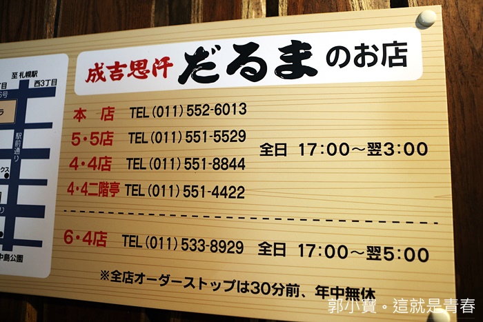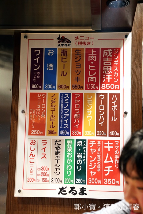 成吉思汗本店就在札幌市中心內的一條小巷子,位子數不多,相較於其他的分店,顯得小而擁擠,但是有時候就是這樣的小店才會更迷人,其實來達摩前我對他的期待還滿高的,畢竟吃過那麼多間成吉思汗,會被譽為必吃的達摩當然也很期待。