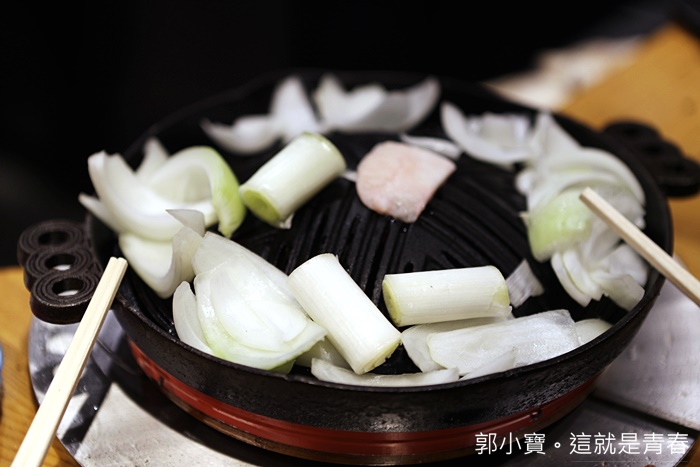 | 火爐上會撲滿洋蔥跟大蔥,大部分的成吉思汗都是只放洋蔥,達摩則是多了大蔥,大蔥跟洋蔥我有點遺忘是不是免費續加,其他成吉思汗是可以免費續加。 |