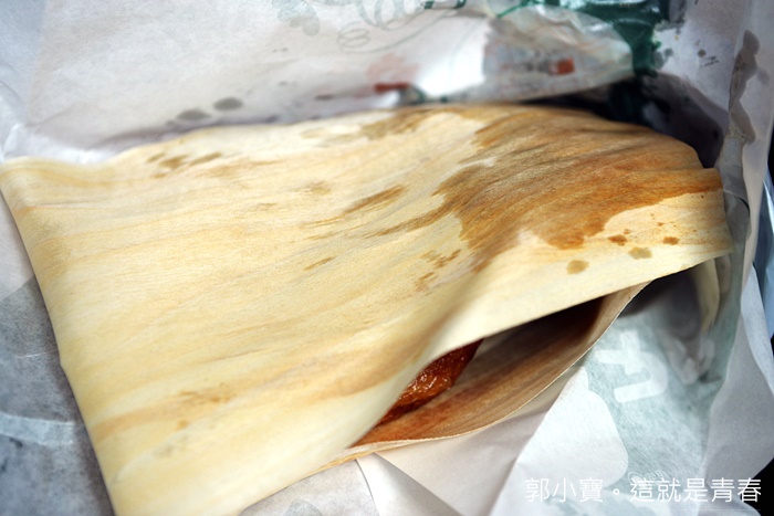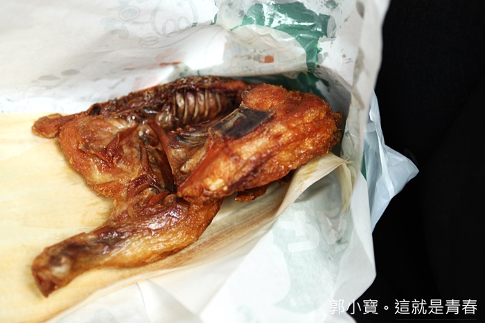 | 裡面包裹著木紙以外外面還裹著油紙還滿精緻的,現場吃的話真的很燙手,大家要注意一點,因為肉汁真的會噴發,揭開來的那一霎整車子都是炸雞的香味。 |