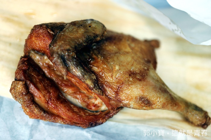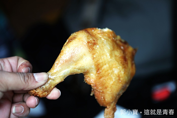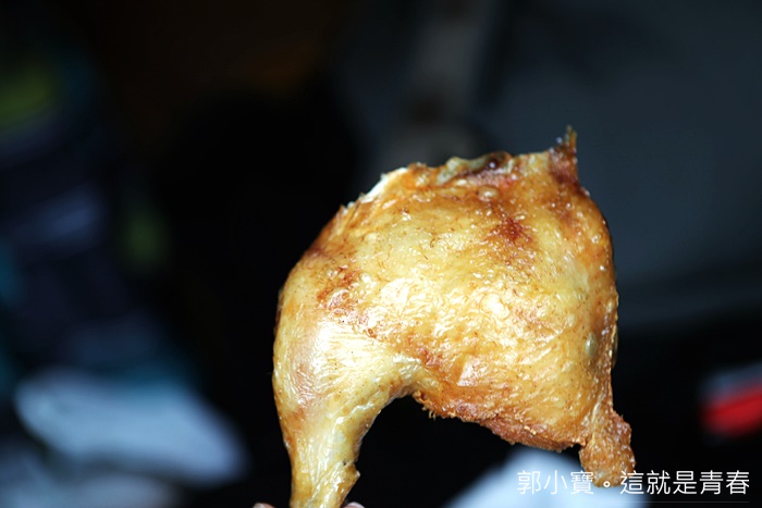 | 立馬撕下雞腿來品嘗一下,雞皮的口感有一點脆脆的,滋味真的很好,雞肉本身超嫩口的,且肉汁超多一整個大噴發,真的滿足我的口腹之慾,一整個愛慘,一口接著一口大口吃,真的還滿好吃的,雖然在台灣的很多小店炸半雞也很好吃,但是若雞時代確實也很有水準。 |