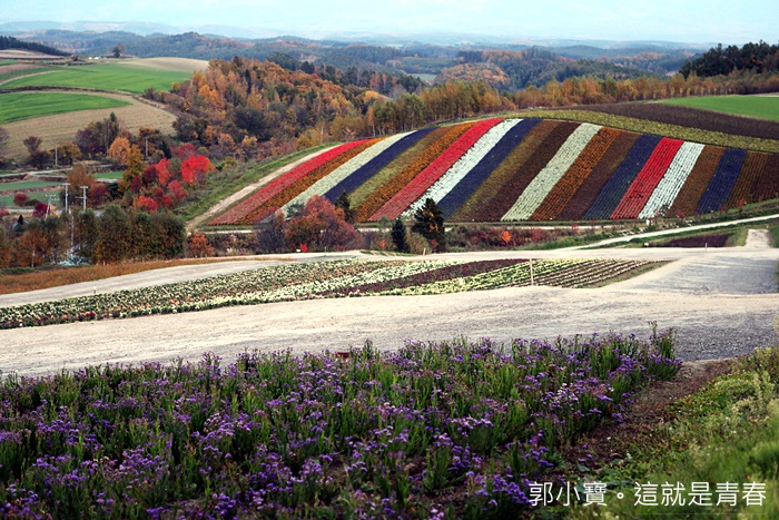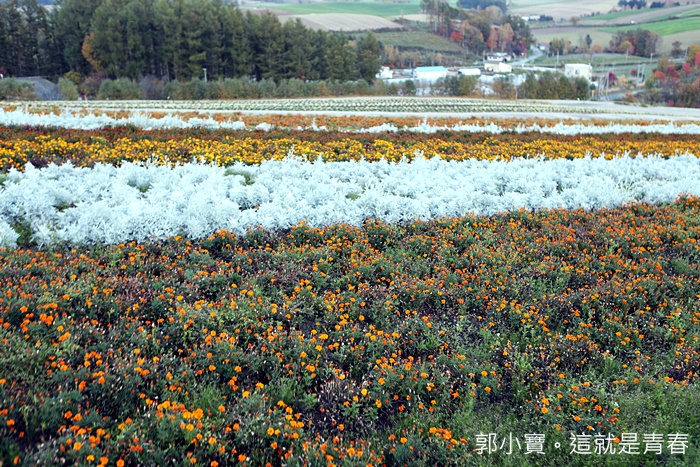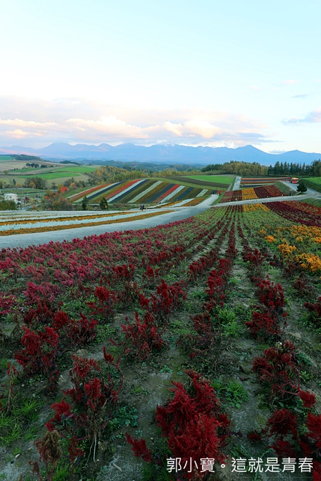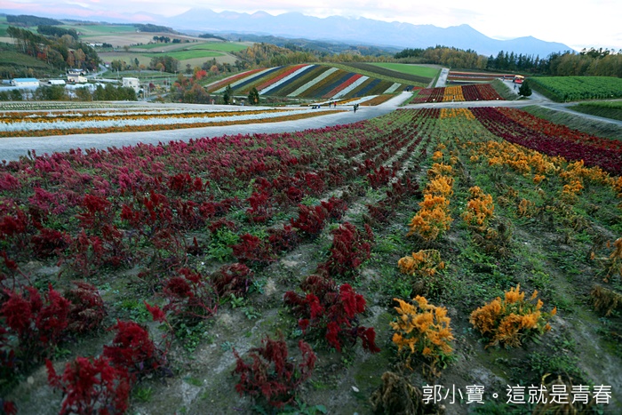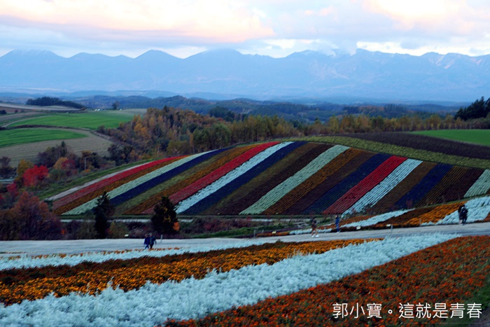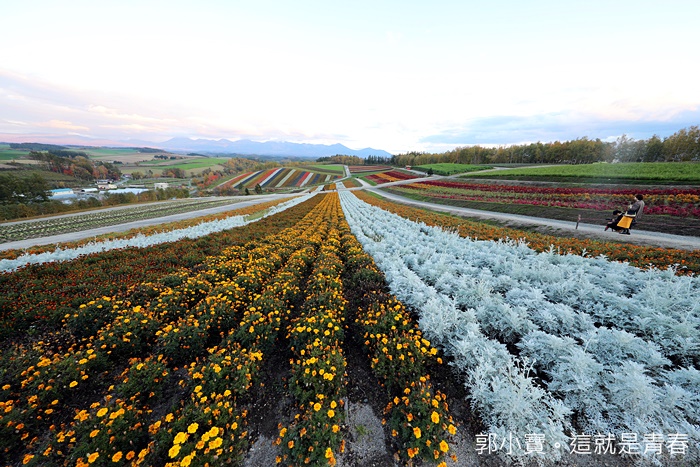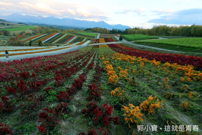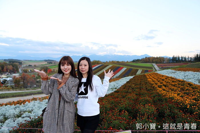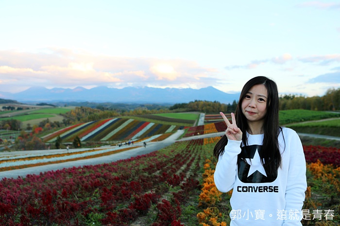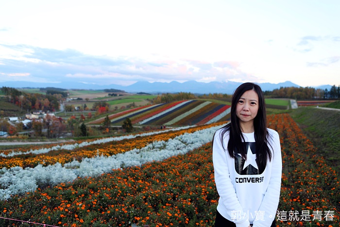 展望花圃四季彩之丘算是每個來北海道都一定要造訪的景點,尤其那一望無盡的花海真的太美了,從每年五月開始就是它的季節,一直延續到十月都有不同的花景可以看,我們去的時候是11月,已經到了花季的末端了,但是幸好還有超大一片的花海,且又再閉園的前兩個小時到,但是這樣的好處就是,幾乎都沒什麼遊客,我們幾個人可以狂拍!