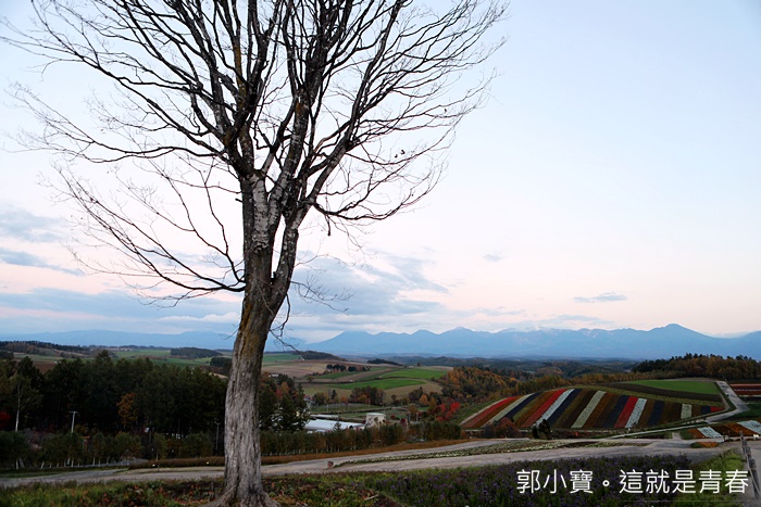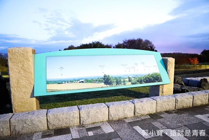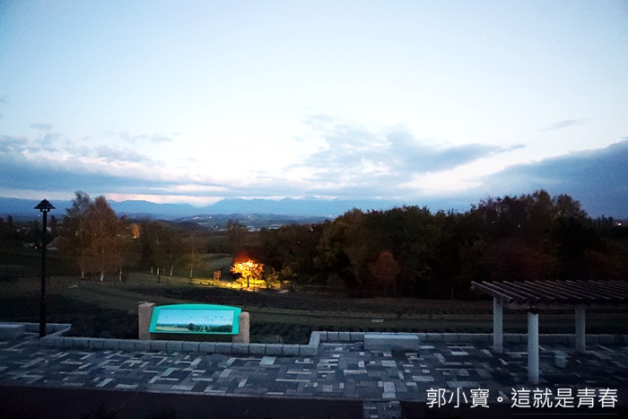 | 會趕著離開是因為朋友急著趕著帶我們去看拼布之路,但是無奈天色真的太晚,有點看不出來了,這個觀景台我有點忘了在哪,因為我們是自駕,由北海道生活的朋友陪我們一起玩15天,所以也是它帶我們來的,只能隱約的看到那數萬公頃拼出來的丘陵。 |