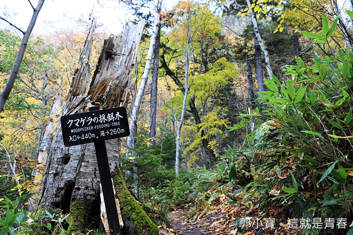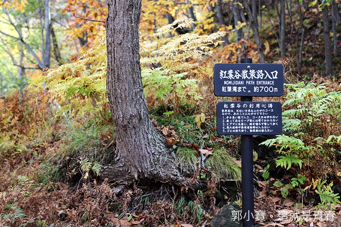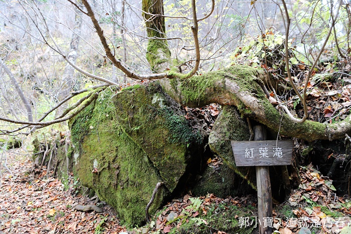 在走一下終於看到紅葉瀑布的告示牌了,遠遠的就可以看到瀑布,紅葉瀑布不是屬於壯觀類型的瀑布,遠遠的看到瀑布時候其實我有一點失望,就是因為似乎沒有很壯觀。