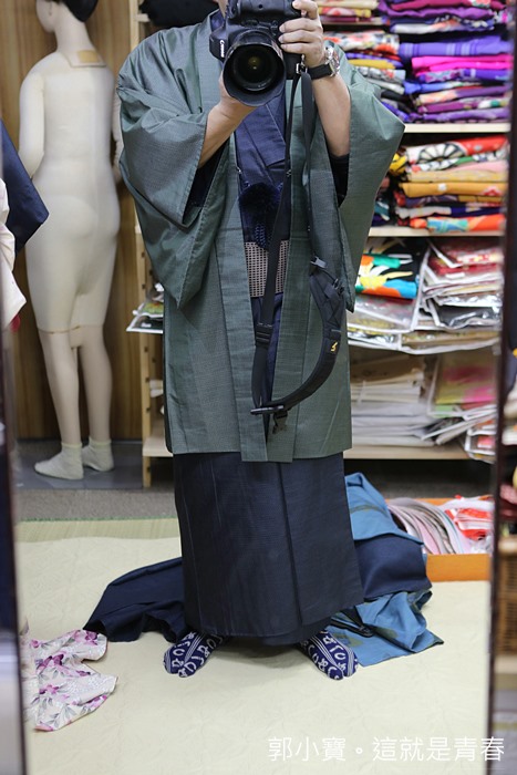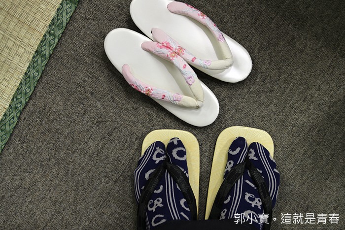 | 男生換裝較簡單,三兩下就換好了,花てまり和服租借體驗不只有服裝跟髮型,連腳下的木屐跟襪子都幫大家準備好了。 |