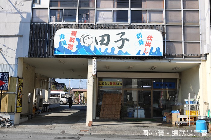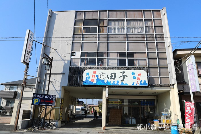 | 走到後方就可以看到田子海鮮餐廳的入口,當天吃完要離開的時候大約下午6點左右,就看到外面一堆人準備要進入店內用餐,還有公司巴士一起載一堆人來用餐,人潮真的超多。 |
