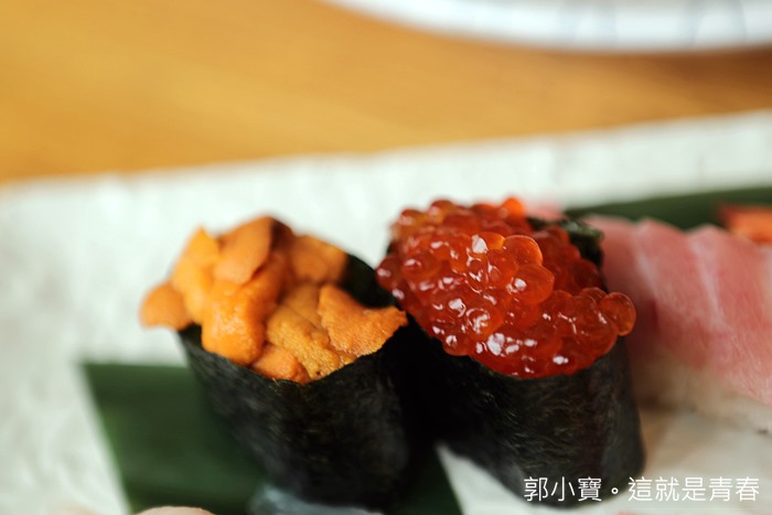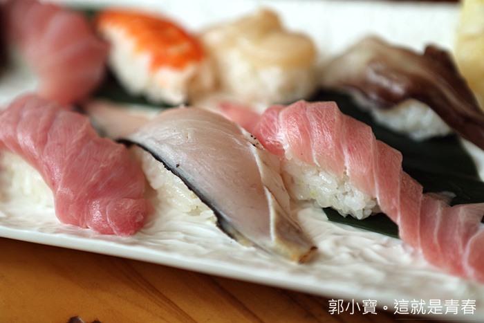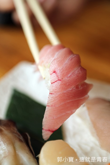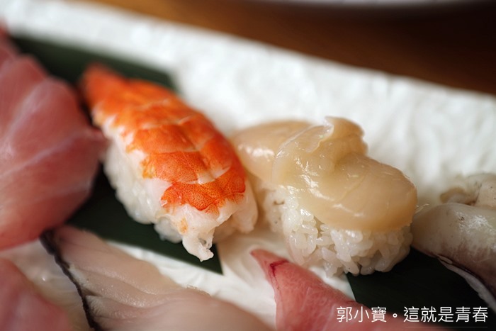 | 不管是鮪魚肉、北寄貝、生干貝等等都很好吃,食材幾乎都是白飯的兩倍大,整整個蓋住了米飯,這一份女性友人直喊著吃不完,分量真的非常的多,11貫女性友人大概吃了6.7貫就說吃不動了XDD |