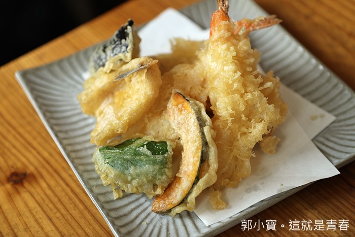 定食類也很多人點的天婦羅定食,炸蝦給得很大方,不是拉長蝦,是道道地地的大蝦啊! |