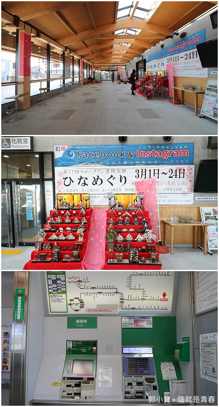 | 常陸太田的車站還滿新穎的,在鄉下地方這車站算是很有設計款,屋頂的玻璃帷幕讓自然的光線透射進來但卻不悶熱,大量的採光玻璃非常舒服,且大廳中間都會有不定期的城市展示藝術品,距離東京不遠的距離就可以來到這美麗的城市,觀光案內所內除了常陸太田的風景介紹DM以外,還有當地的特產及麵包等等美食小味。 |