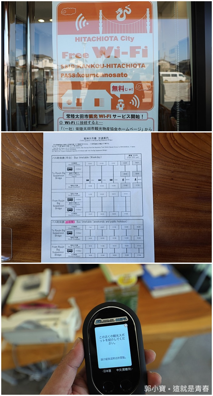最重要的就是常陸太田市有提供免費的WIFI機七天不限流量給遊客使用,而且是不降速吃到飽,需要準備護照及電子信箱,申請的方法很簡單,重點是歸還的方式有很多種,不用甲地租甲地還,除了機場可以還以外也可以用宅配寄還給WIFI機公司,宅配費用也是常陸太田市負擔,全部都是免費的,很多網友來到茨城縣都一定要飛奔常陸太田市來申請這個好康。 |