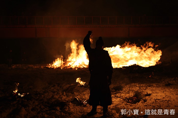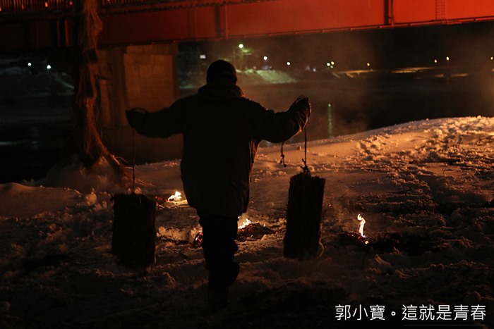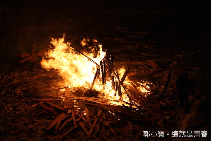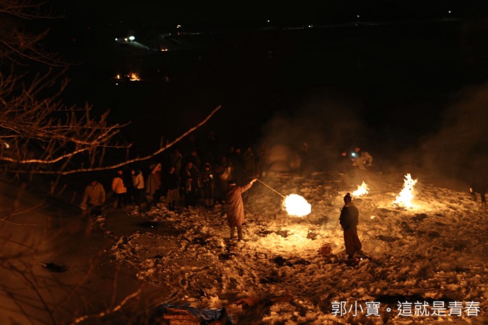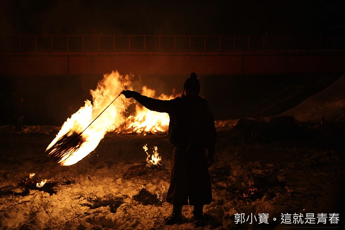 | 工作人員一直問我們有沒有人要下來體驗,其實就是綁著繩子的一綑稻草,點燃後甩著他繞圈圈來驅邪避凶。 |