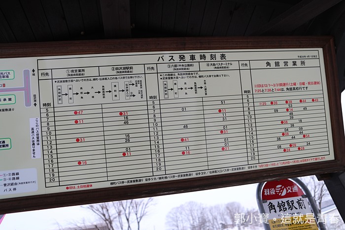 | 距離角館車站不遠處就是公車候車亭,來角館自助旅行的話巴士就很重要了,這邊的巴士大部分角館的重要地點都會有停靠。 |