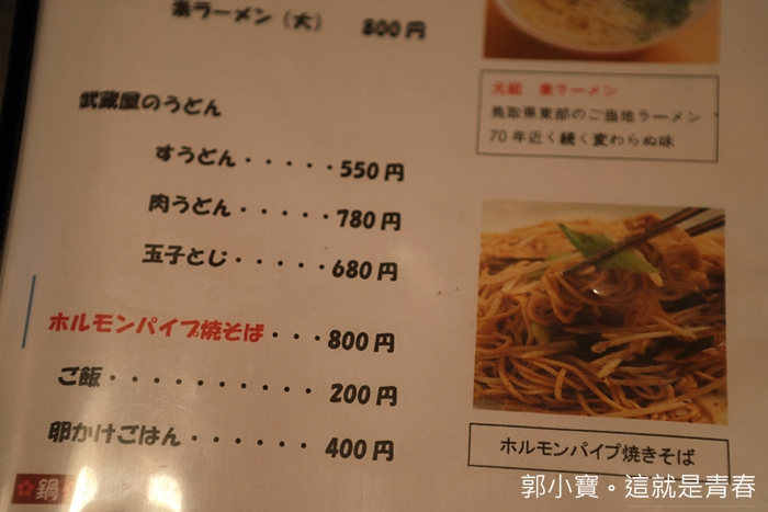 | 因為這次來鳥取的人數滿多的,所以戰力算是還滿堅強的,所以翻開菜單我們就開始點了,除了牛雜炒麵以外還有點拉麵跟其他餐點。 |