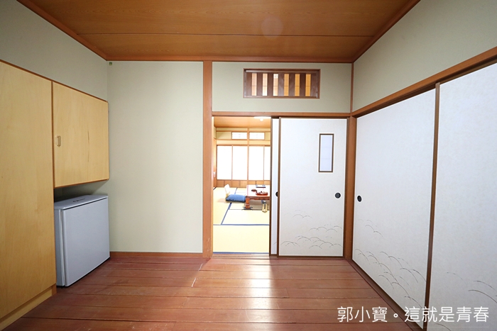 一打開房門就看到超大的玄關入口,像這樣的玄關入口就知道,行李不能拖進去榻榻米內,日本有很多老旅館尤其是榻榻米的房間,是不允許客人把行李箱拖進去榻榻米上的,所以玄關做的非常大,行李箱可以放在玄關處,避免拖進去榻榻米內破壞榻榻米。