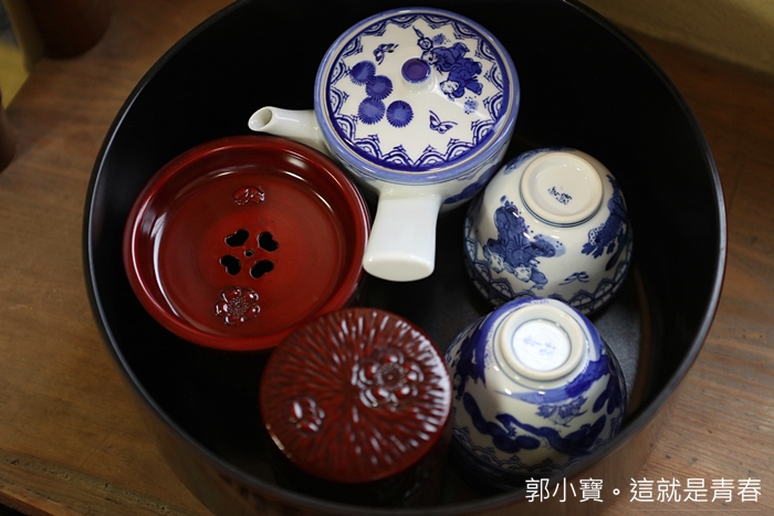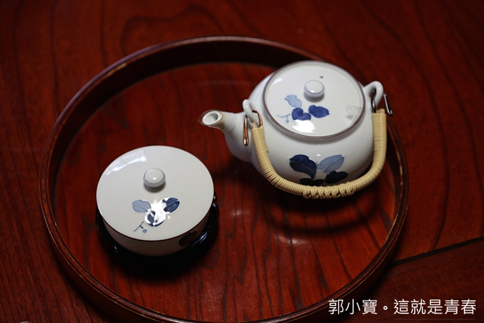 | 如果還想喝茶的話,電視旁的圓盒裡面有煎茶粉跟茶壺可以沖泡。 |