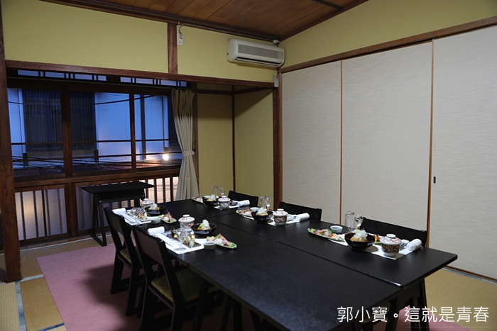 晚餐同樣預定古良湯之宿的晚餐,我們獨自在一間小包間內用餐,用餐的桌椅是矮式的西洋桌椅,我覺得還滿不錯的,因為坐在榻榻米或是跪坐對我來說超累,老人家也很容易腳麻或是不好起身。