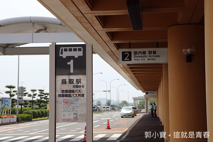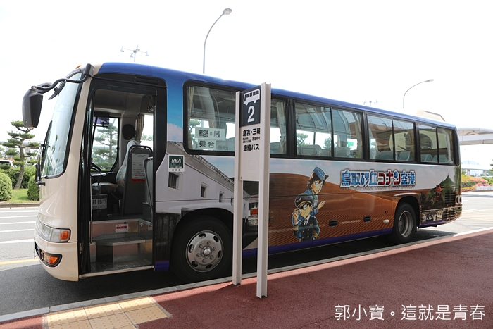 | 鳥取車站有巴士往返鳥取機場,如果妳要從機場到達鳥取車站的話,那直接再2號站牌搭車即可,連巴士都是滿滿的柯南。 |