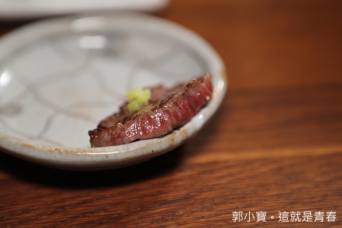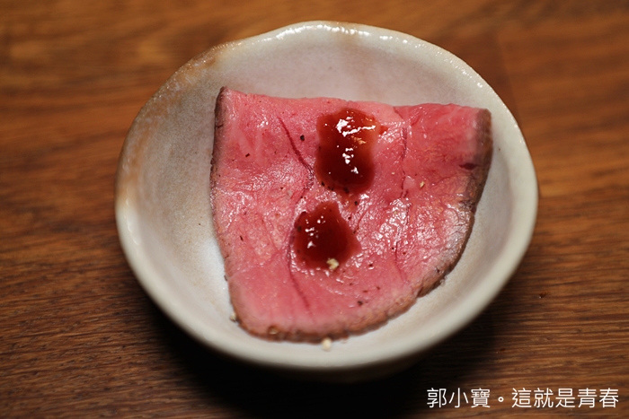 | 這塊牛肉是老闆烤好切片端上來的,看這熟度一整個讓我口水直流,忍不住趕緊放到嘴理,豐沛的肉汁噴發加上熟度恰恰好,肉質軟摁,真的非常迷人。 |
