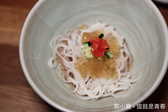 | 本來菜單提供的是茶泡飯,但是老闆覺得天氣較熱,幫我們換成了冷麵。 |