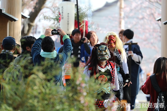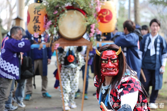 | 在櫻花紛飛的日子裡,鬼面使者配合著鼓聲舞蹈著,眾人的吆喝聲,真的讓人印象非常的深刻。 |