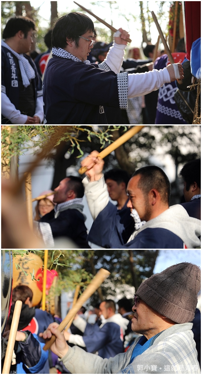| 敲打鬼太鼓的使者有很多人,幾乎都是排隊成一列,累了就替換下一個上場,整場上陣幾乎快超過半小時以上,所以需要耗費大量的體力。 |