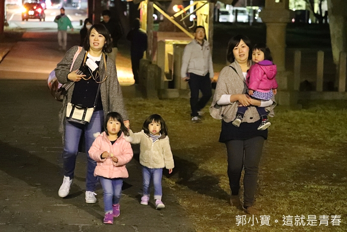 | 逐漸的夜幕低垂,遠方傳來了陣陣的鼓聲,燈光在遠方一陣亮一陣滅,突然間神社鳥居就出現了黑影,要不是我知道是來參加祭典,我還以為是來參加黑色會的幫派談判咧,瞬間讓我想起了古惑仔的電影場景XD |