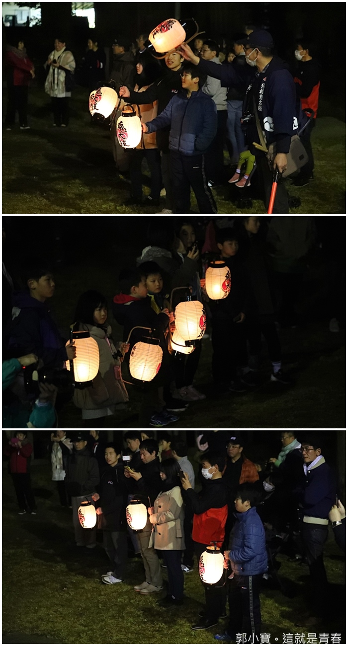 | 群眾裡面還有小朋友手持燈籠幫鬼面使者助陣,讓整場祭典更添張力。 |