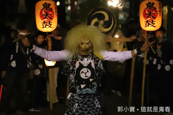 | 戴上鬼面具的使者,時而舞蹈、時而擊鼓,讓鬼太鼓祭震撼力十足,看著不一樣的鬼面真的滿有攝憾人心的感覺。 |