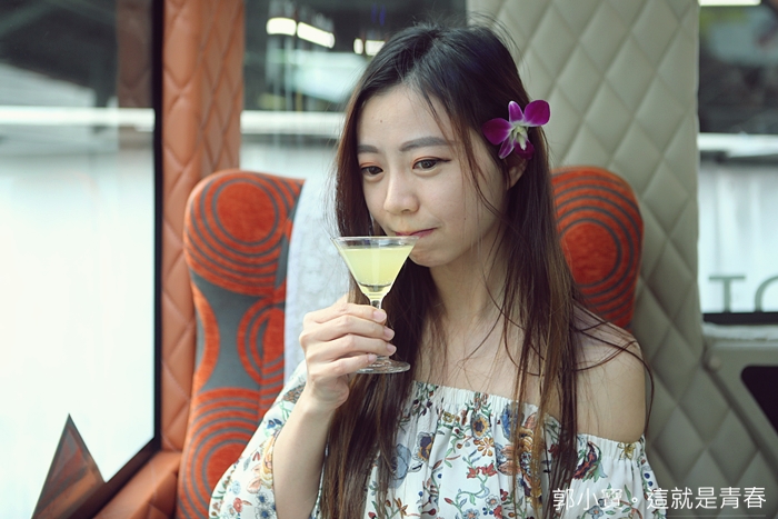 一上車服務人員就先送上迎賓雞尾酒,服務人員的服務非常好,事前說明也都很清楚,車上提供的語言目前只有泰文跟英文解說,因為我們是力威國際旅遊芯 安排的,所以我們還有導遊幫我們翻譯。