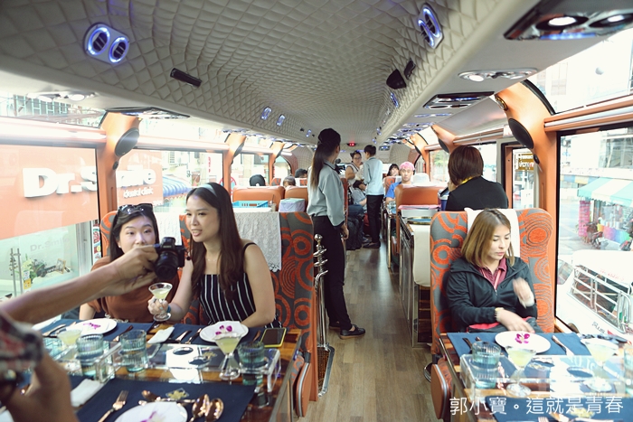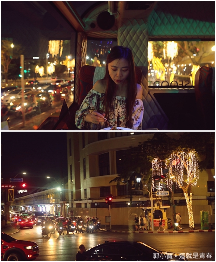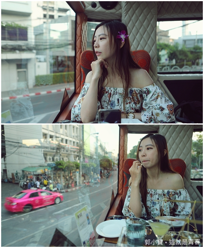 | 巴士緩緩的啟動,每道菜上菜的時間都有間隔,可以一邊慢慢吃一邊欣賞曼谷市區的街景,這樣的體驗真的非常的特別呢! |