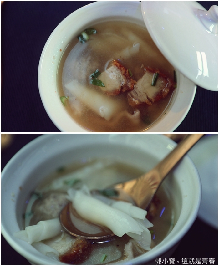 這一道菜是當天我最愛的一道,從湯品喝起來的滋味非常鮮,還有胡椒香氣提味以外,脆皮燒肉真的很好吃,裡面還有吃起來很像很Q的粄條,這一碗我真的喝到碗底朝天才肯罷休。 |