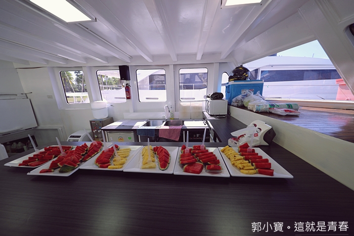 | 一上船船家就先準備迎賓水果,都是剛剛從冰箱拿出來的,冰冰涼涼的超解暑。 |
