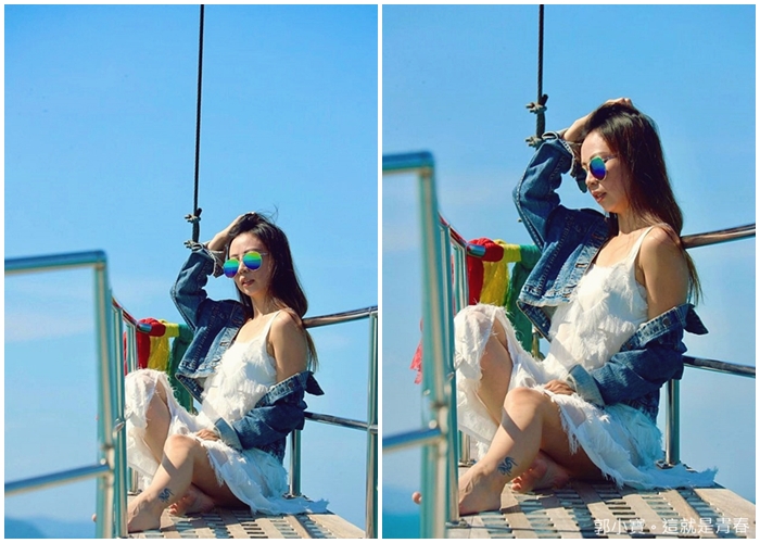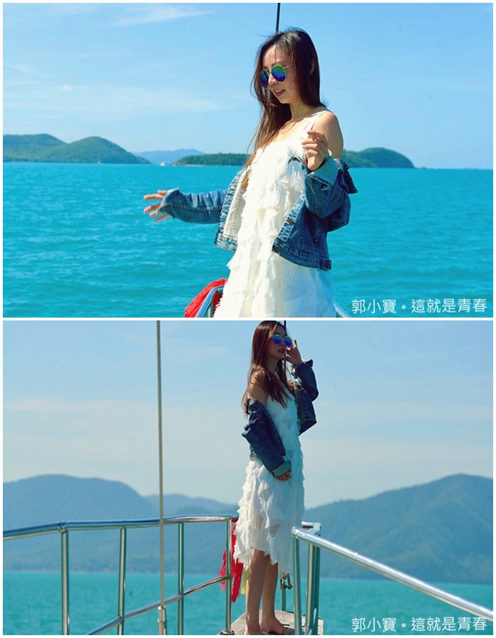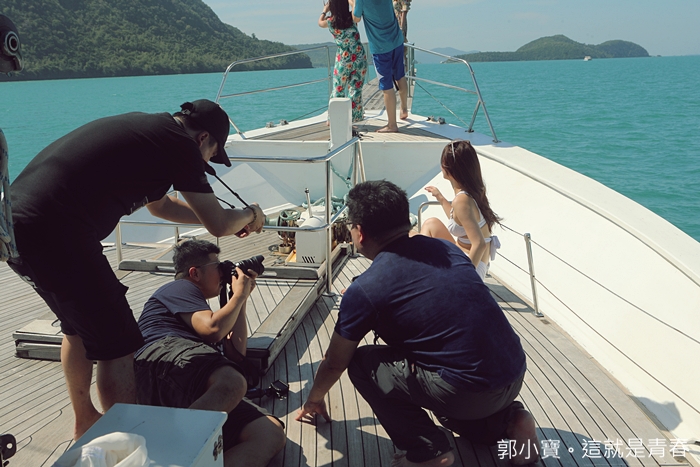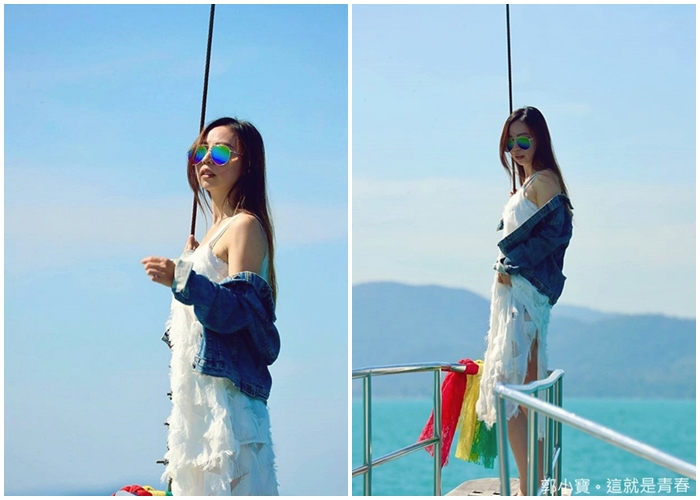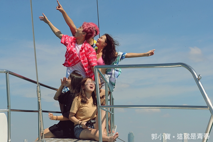 | 因為這一團的女神眾多,但是好險遊艇上每個角落都可以拍出美美的照片,所以大家不會全部擠在一個地方拍照,有的人先去換上比基尼,但是這篇文章你們大家應該看不太到其他的比基尼辣妹,因為我這一趟帶太飛出門,鏡頭只能有她XDDD |