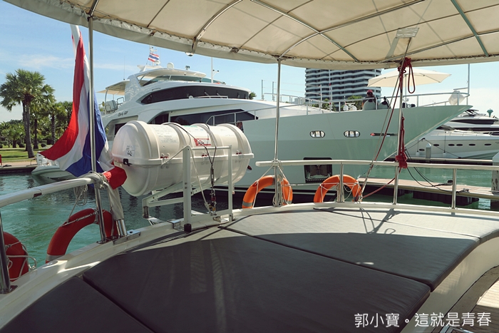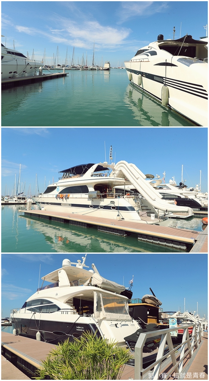 | 沿著碼頭棧板走超多遊艇的,每一艘感覺都很厲害,泰國導遊說這邊有一半以上的遊艇都是台灣製造的,台灣真的是遊艇王國。 |