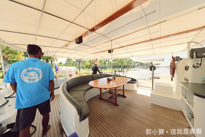 | 前方也超大的,同樣有休閒桌椅,重點不管前方還是後方都有遮陽部,所以夏天也不會感覺到太熱,在海上的海風非常涼爽。 |