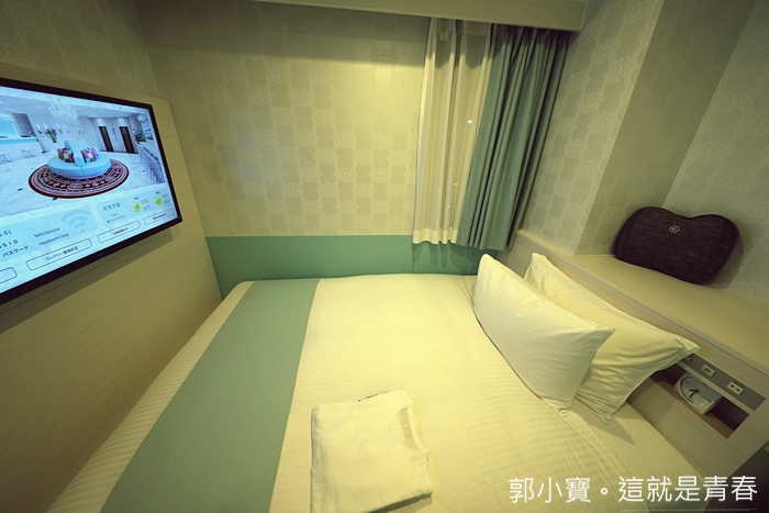 | 走道的最後面就是床鋪,床鋪是1+1的單人床,床墊還滿好睡的,空調也很給勵,枕頭基本就有附上兩顆,睡起來真的還滿舒適的。 |