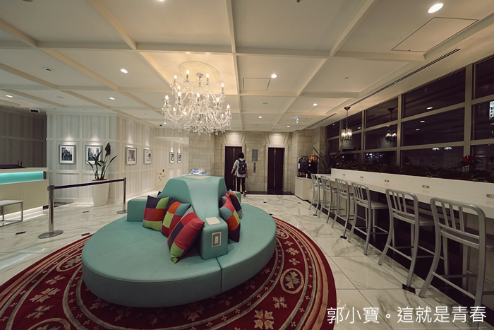 | 大廳進去放眼望去就是帶點時尚的華麗感,大理石紋路的地磚跟純白的天花板處處讓人感覺到時尚,加上湖水綠的大圓椅,一整個就很中女生的點。 |
