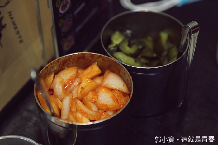 | 店內的招牌醃漬物是直接放在桌上讓客人自由取用的,分別是辣洋蔥跟醃漬小黃瓜,這兩個小菜都超好吃,我很喜歡放在咖哩飯內一起食用。 |