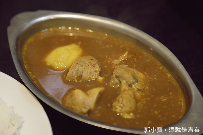 | 他們家招牌的基本款就是這一點雞肉咖哩,算是沒有什麼辣度的咖哩,老實說第一次造訪我也沒有做太多的研究,只是大概了解了一下這一款是創店時的招牌咖哩,端上來的時候味道真的非常香,香料味真的很重,但是顏色看起來有點感覺不是很辣,裡面還有雞肉跟馬鈴薯塊。 |