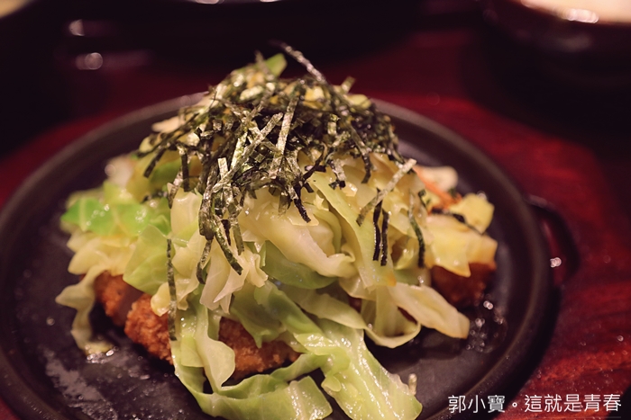 | 這一份算是炸豬排界的一豬兩吃的概念,鰻魚飯裡面也有茶泡飯,這一家的招牌就是豬排茶泡飯,用鐵板放置炸豬排,上面還有很多高麗菜跟海苔,上來的時候味道真的非常香。 |